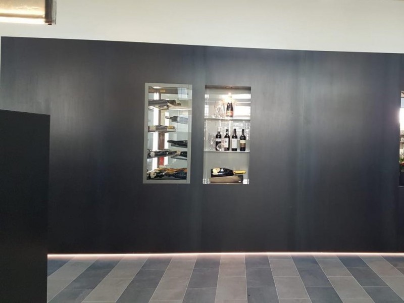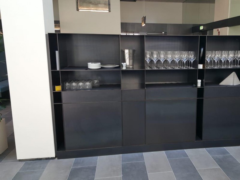 Verkleidung aller Einrichtungsgegenstände im Restaurant und in der Bar.