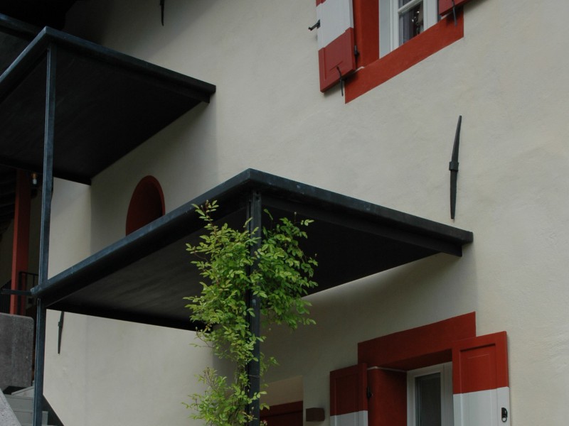 Anfertigung der Dächer, Kehrleisten, Geländer und Blumenvase im Außenbereich, Treppe mir Geländer im Innenbereich.